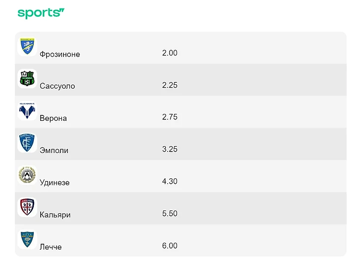 До конца пять туров, календарь кажется более простым у «Фрозиноне» – выше 11-го места в соперниках только «Интер». Посложнее, вероятно, придется «Вероне» – сразу четыре команды из первой десятки плюс «Салернитана».