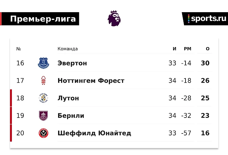 «Лутон» и «Ноттингем Форест» – на границе, у «Эвертона» есть запас.