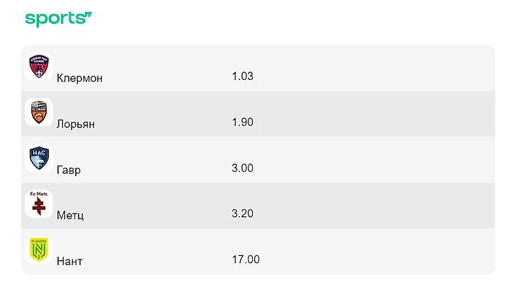 По коэффициентам – вылетит и «Лорьян». А «Гавр» с Далером Кузяевым окажется в стыках, если расклады посчитать за прогноз по занятым местам.
