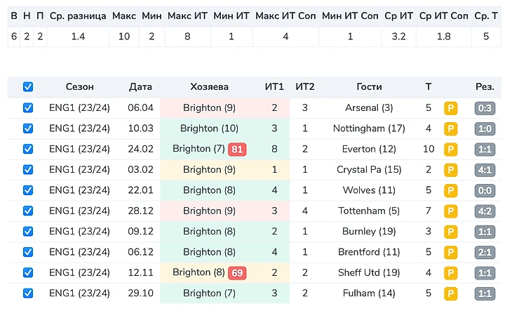 Сегодня «чайки» принимают у себя дома претендента на чемпионство - Манчестер Сити. Брайтон дома в среднем подает 3,2 угловых в первом тайме (см скрин #1 ниже)