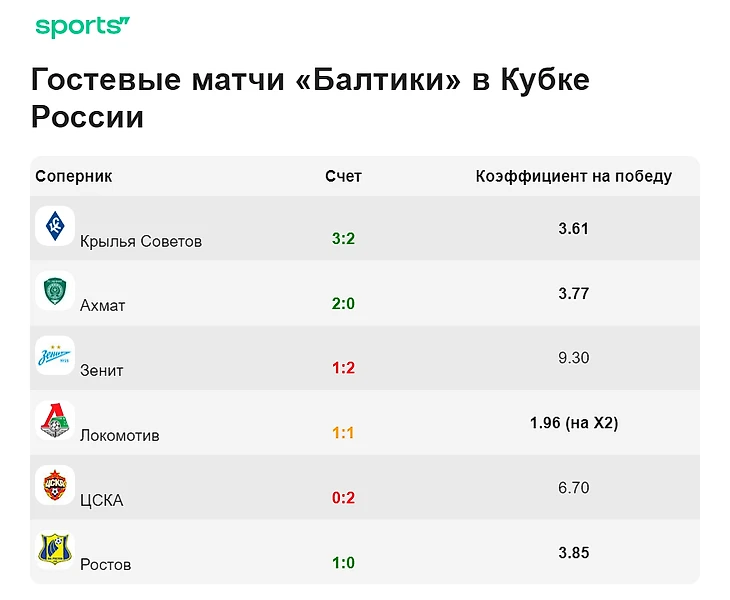 Дома в группе балтийцы обыграли «Зенит» и разгромили «Ахмат», но уступили «Крыльям Советов». Еще были 2:2 с «Локомотивом» и 0:1 от ЦСКА.