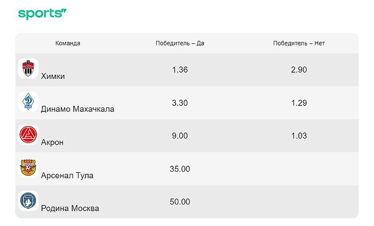 «Химки» – явный фаворит у букмекеров. У команды Андрея Талалаева самый сбалансированный состав среди конкурентов, во второй части сезона «Химки» выиграли шесть матчей из девяти (еще три – проиграли). Чемпионство идет за 1.36.