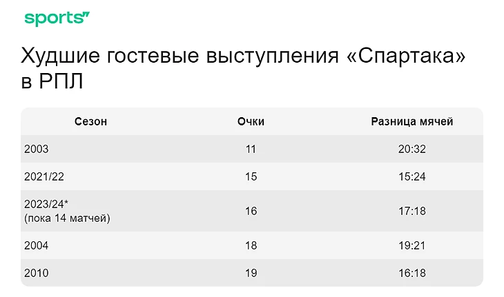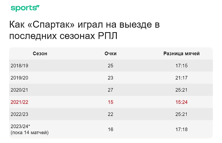 Но сезон-2023/24 в любом случае войдет в пятерку самых тяжелых для «Спартака» по гостевым очкам.