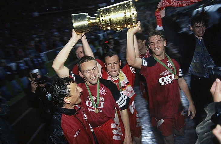 В Бундеслиге аналогов не найти у «Кайзерслаутерна». Центральной фигурой был автор победного гола на ЧМ-1990 Андреас Бреме. В финале герой большого турнира удалился на 72-й минуте, чтобы партнеры организовались и отстояли преимущество над «Карслруэ».