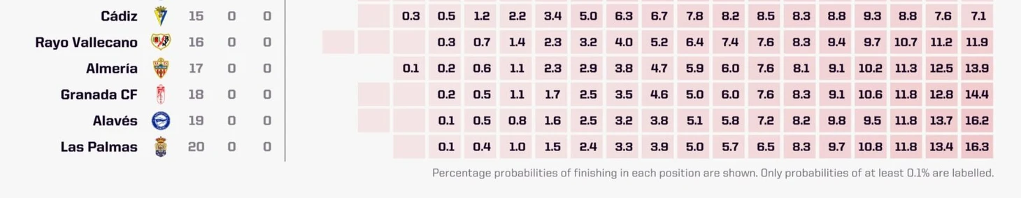 Любопытно, что у аналитиков Opta именно «Лас-Пальмас» был главным претендентом на понижение в классе. Здесь из тройки итоговых аутсайдеров угадали только «Гранаду».