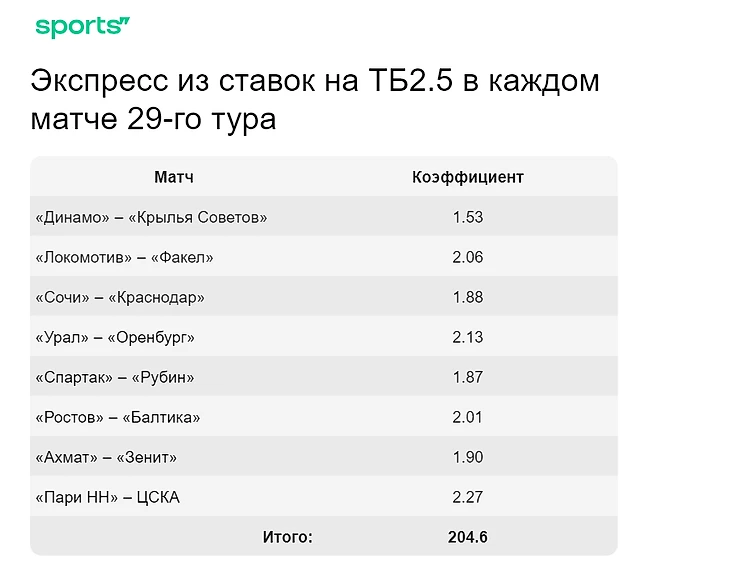 Букмекеры верили в высокую результативность только в игре «Динамо» – «Крылья Советов»: на ТБ2.5 предлагали коэффициент 1.53. Ожидаемо, ведь ТБ2.5 сыграл в 7 из 8 последних матчей «Динамо» в РПЛ.