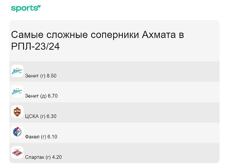 «Ахмат» в то же время до разгромного поражения от «Зенита» выдал историческую для себя серию из пяти побед подряд. Команда в шести матчах забила двенадцать голов.