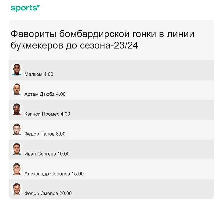 Очевидно, что на следующий сезон уже Кассьерра и Тюкавин будут явными фаворитами, если останутся в РПЛ. А коэффициенты на Соболева, Комличенко и Сергеева значительно подрастут.