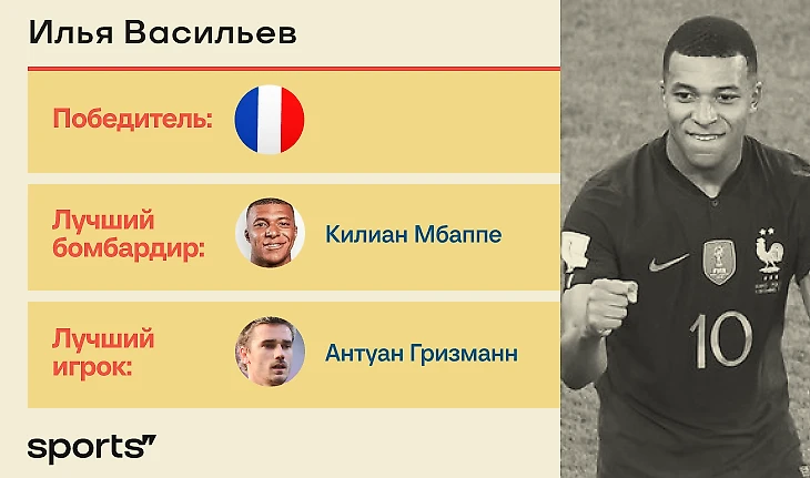 Лучший бомбардир: Килиан Мбаппе. Я хочу, чтобы лучшим бомбардиром стал Оливье Жиру. Красивое завершение международной карьеры и классный микс тактических эпох: без голов стал чемпионом мира, может оказаться главным бомбардиром Евро в 37.