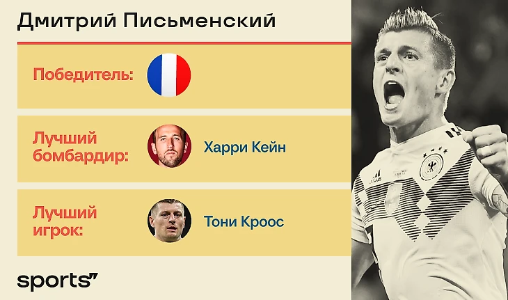 Лучший игрок: Тони Кроос. Выбираю Тони, чтобы быть последовательным. Если Германия – чемпион, то у Крооса хороший шанс на индивидуальный приз. Он всегда дает качество и стабильность, а история с завершением карьеры – дополнительный стимул выбрать его.