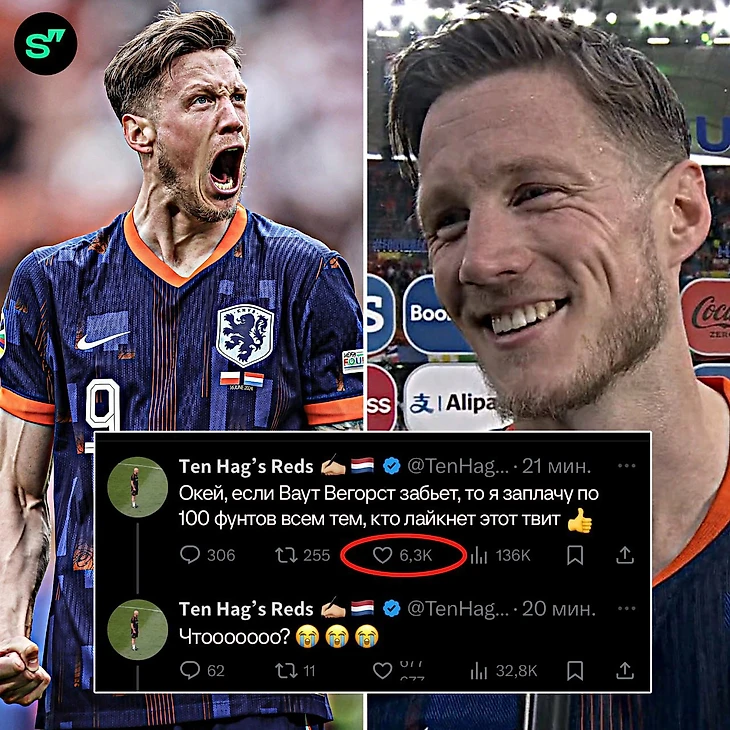 Забавная история из твиттера. Болельщик «Манчестер Юнайтед», где еще недавно играл сам Ваут, пообещал 100 фунтов всем, кто поставит лайк под его записью, если Вегорст забьет в конце матча.
