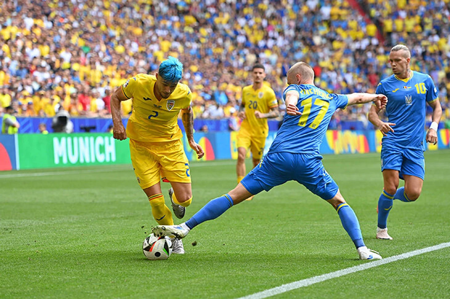 Румыны начали в середине первого тайма с пока самого красивого гола турнира: Николаэ Станчу классно пробил издали после ошибки украинской обороны, Андрей Лунин вынес мяч прямо сопернику, Румыния нашла возможность забить после одного паса.