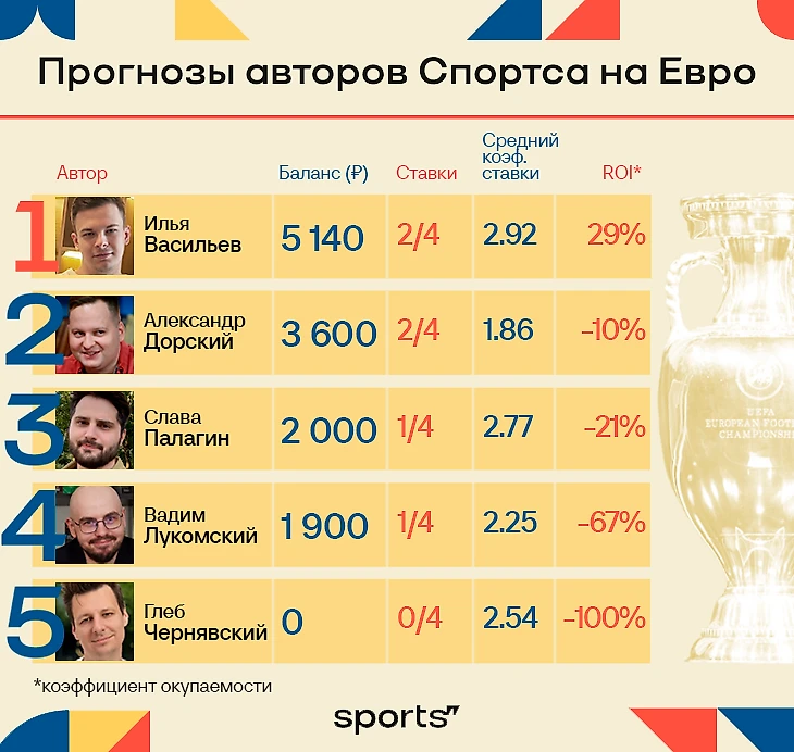 Ставки на Спортсе продолжают ежедневные прогнозы от пяти авторов на Евро-2024.