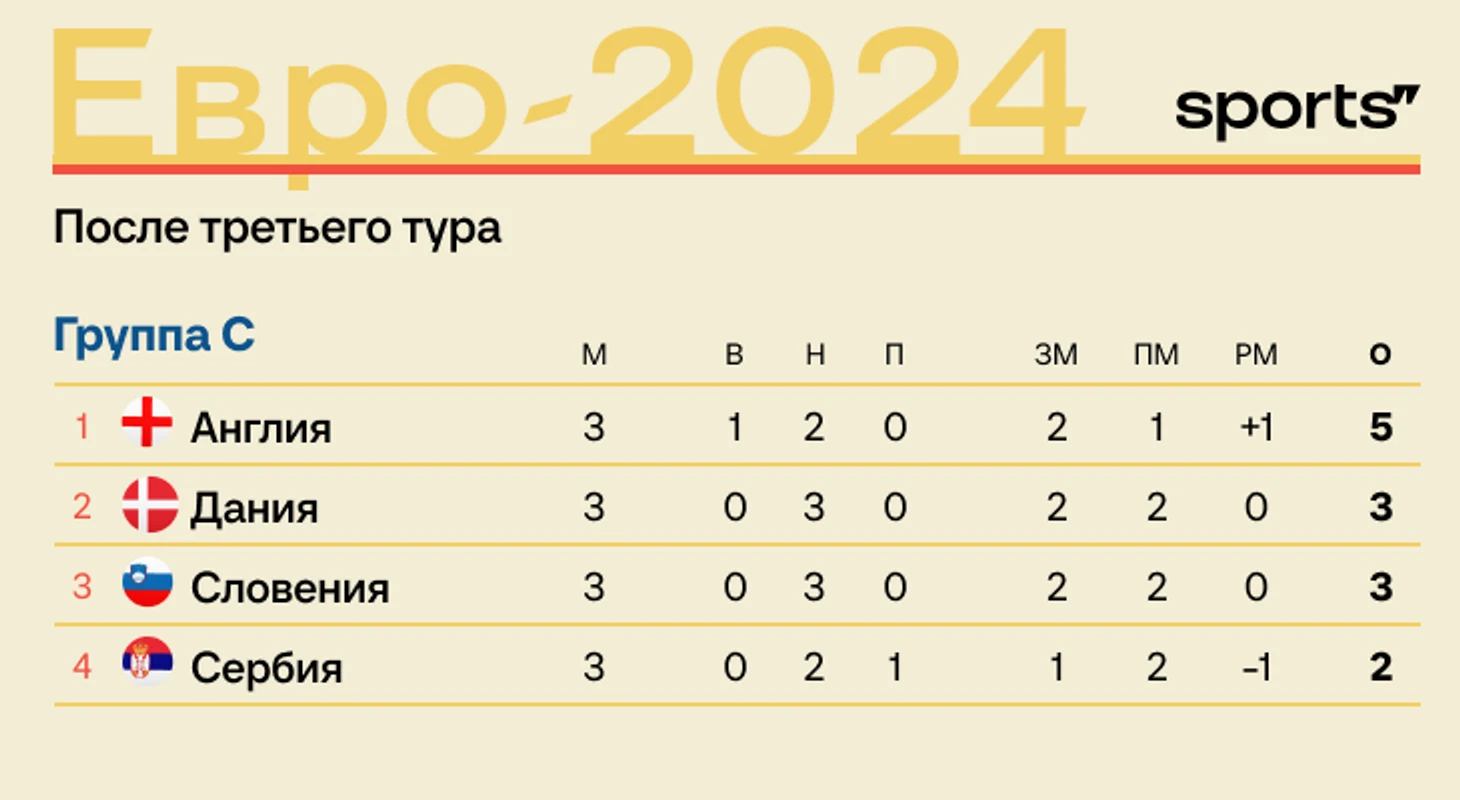 Итоги группы C: Англия все хуже, Словения и Дания выползают без побед