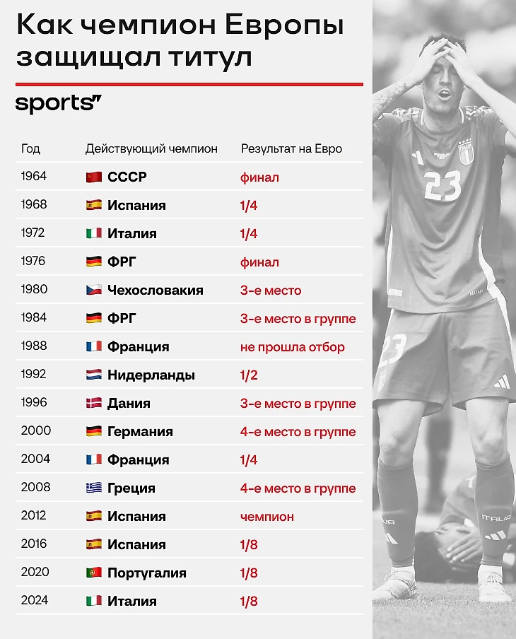 Только один чемпион защищал титул. Три Евро подряд – вылеты в 1/8 финала