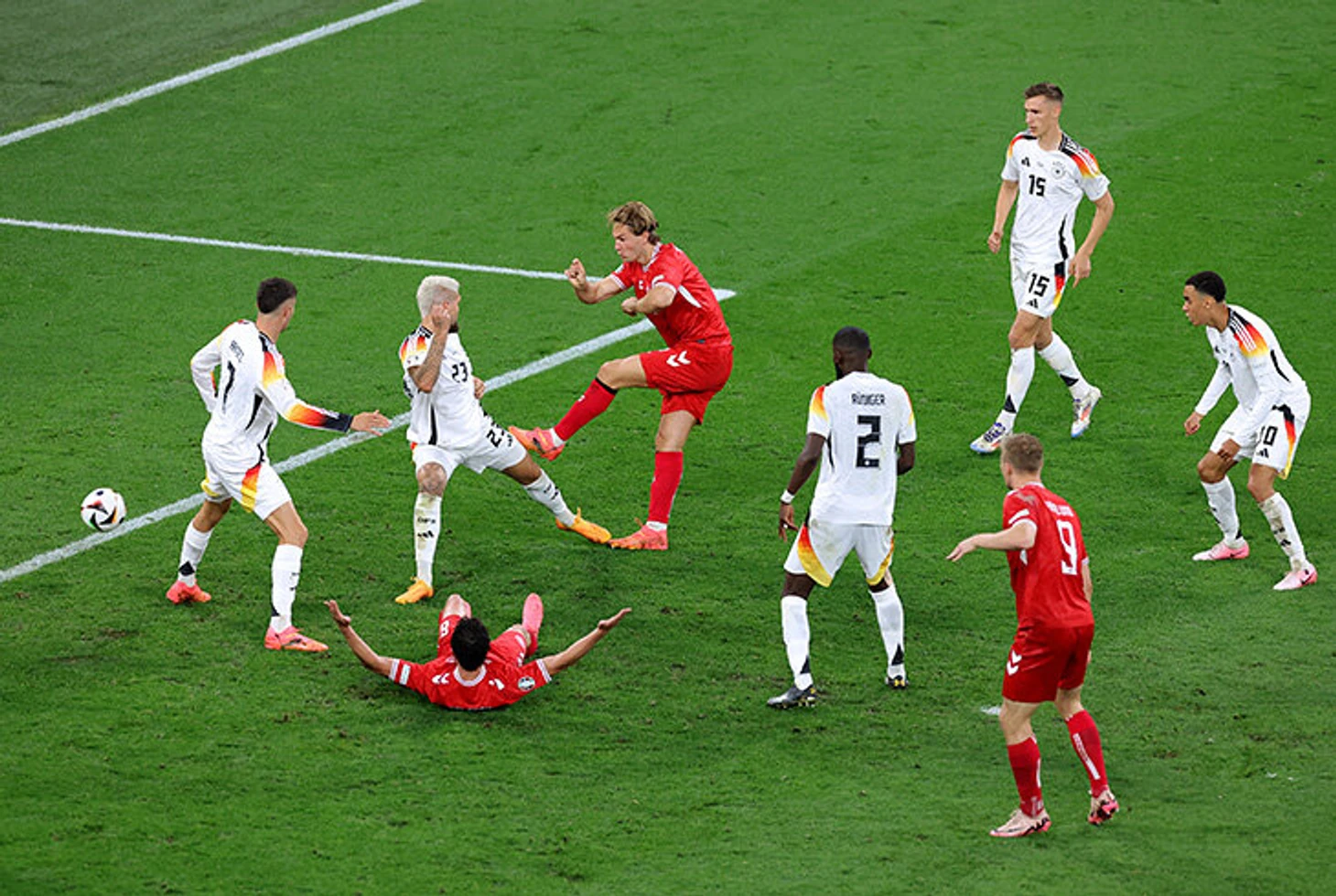 В матче Германия – Дания сгорел гол за 41.00 – и все из-за микроскопического офсайда