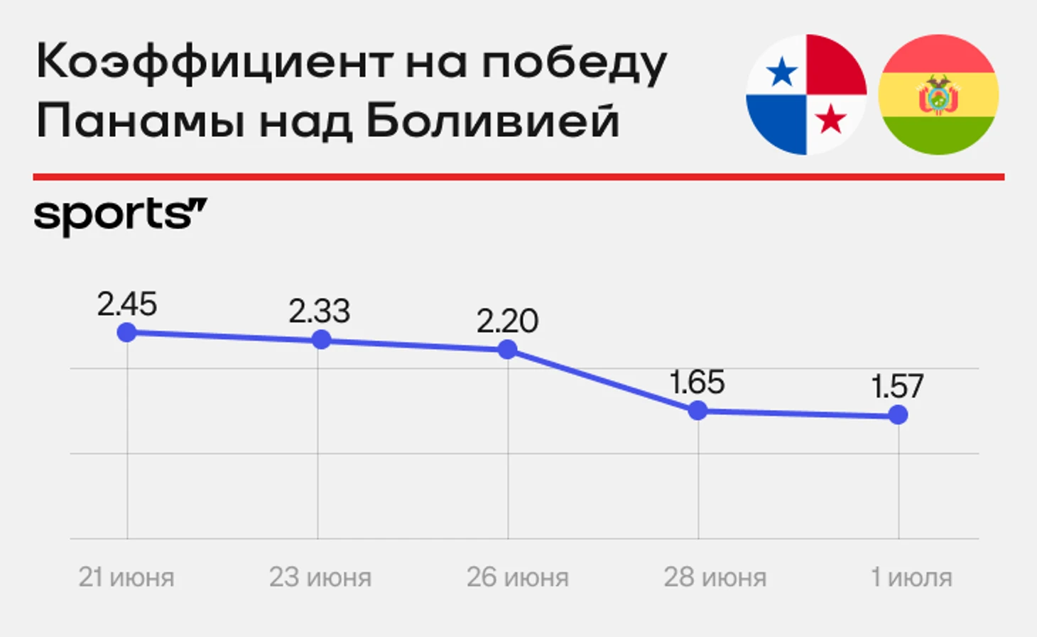 На победу Боливии над Панамой перед стартом турнира давали 2.90. Уже 28 июня он взлетел до 4.75, а 1 июля можно было даже найти значение 6.25.