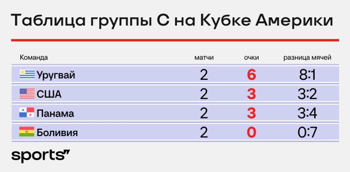 Два момента. Первый – в последнем туре Уругвай играет с США, а Панама – с Боливией. Второй – при равенстве очков на Копе считается сначала разница мячей (и при равенстве – количество забитых), а только затем личные встречи.