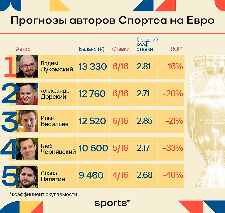 Ставки на Спортсе продолжают ежедневные прогнозы от пяти авторов на Евро-2024.
