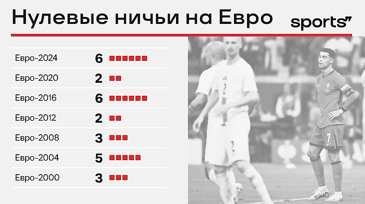 Евро-2024 получается особенным в плане статистических трендов. Необъяснимая динамика по автоголам, много мячей с дальней дистанции, совсем мало дублей, а еще вот обострились нулевые ничьи.