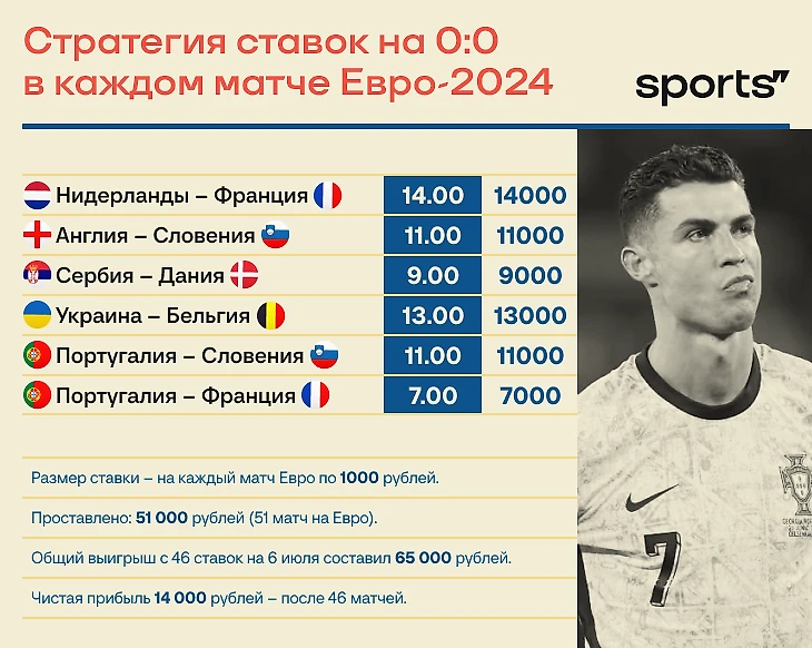 А если ставить на 0:0 каждый раз? Вот сколько принесла бы тактика на Евро