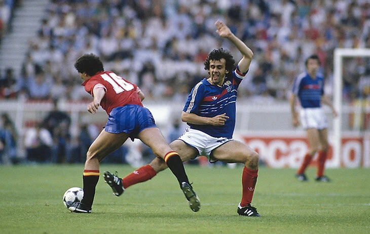 Через четыре года испанцы выиграли всего один матч в группе, но заняли в ней первое место из-за гола в третьем туре на 90-й минуте. В полуфинале прошли датчан в серии пенальти – и угодили на грозную Францию с Мишелем Платини.