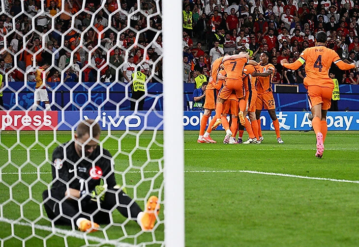Сборная Нидерландов обыграла Турцию в четвертьфинале Евро-2024 – и это волевая победа 2:1. На гол Самета Акайдина за шесть минут во втором тайме ответили Стефан де Врей и Коди Гакпо с помощью автогола Мерта Мюльдюра.