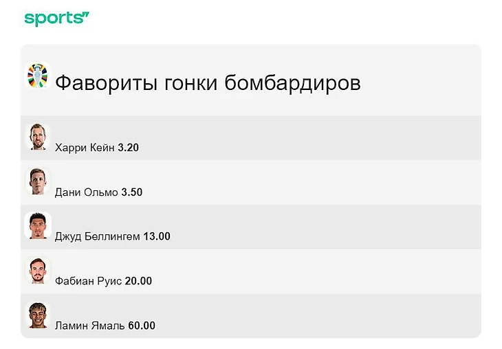 До турнира Кейн делил первое место в списке претендентов с Килианом Мбаппе, а Ольмо вообще появился в рейтингах лишь после первого забитого мяча, да и то с коэффициентами не ниже 50.00. Дани не рассматривали всерьез, а свой первый гол он забил только в ворота Грузии – в 1/8 финала. До этого почти не выходил в старте, но теперь Ольмо – явный фаворит.