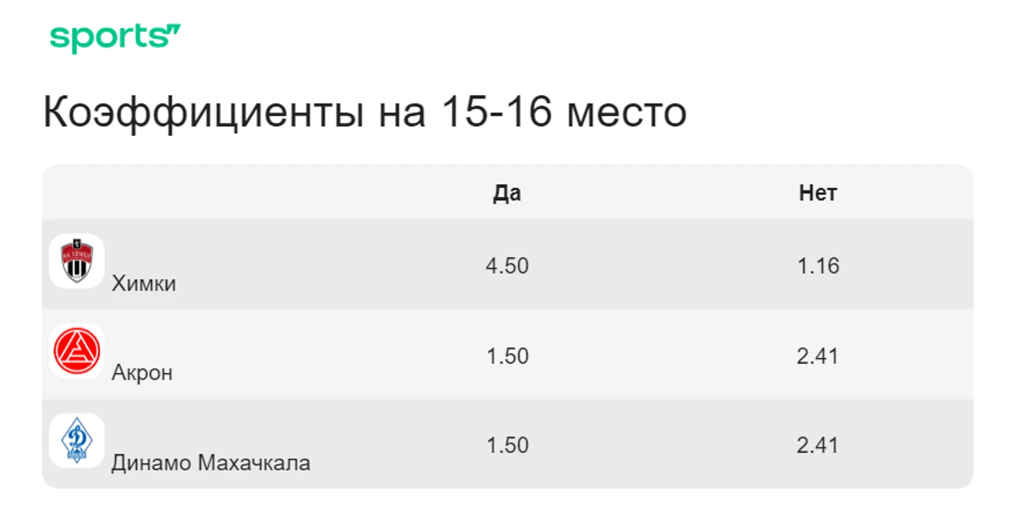 Дебютантам дают одинаково низкий коэффициент на 15-16 место по итогам сезона – 1.50. Места повыше – коэффициенты подороже.
