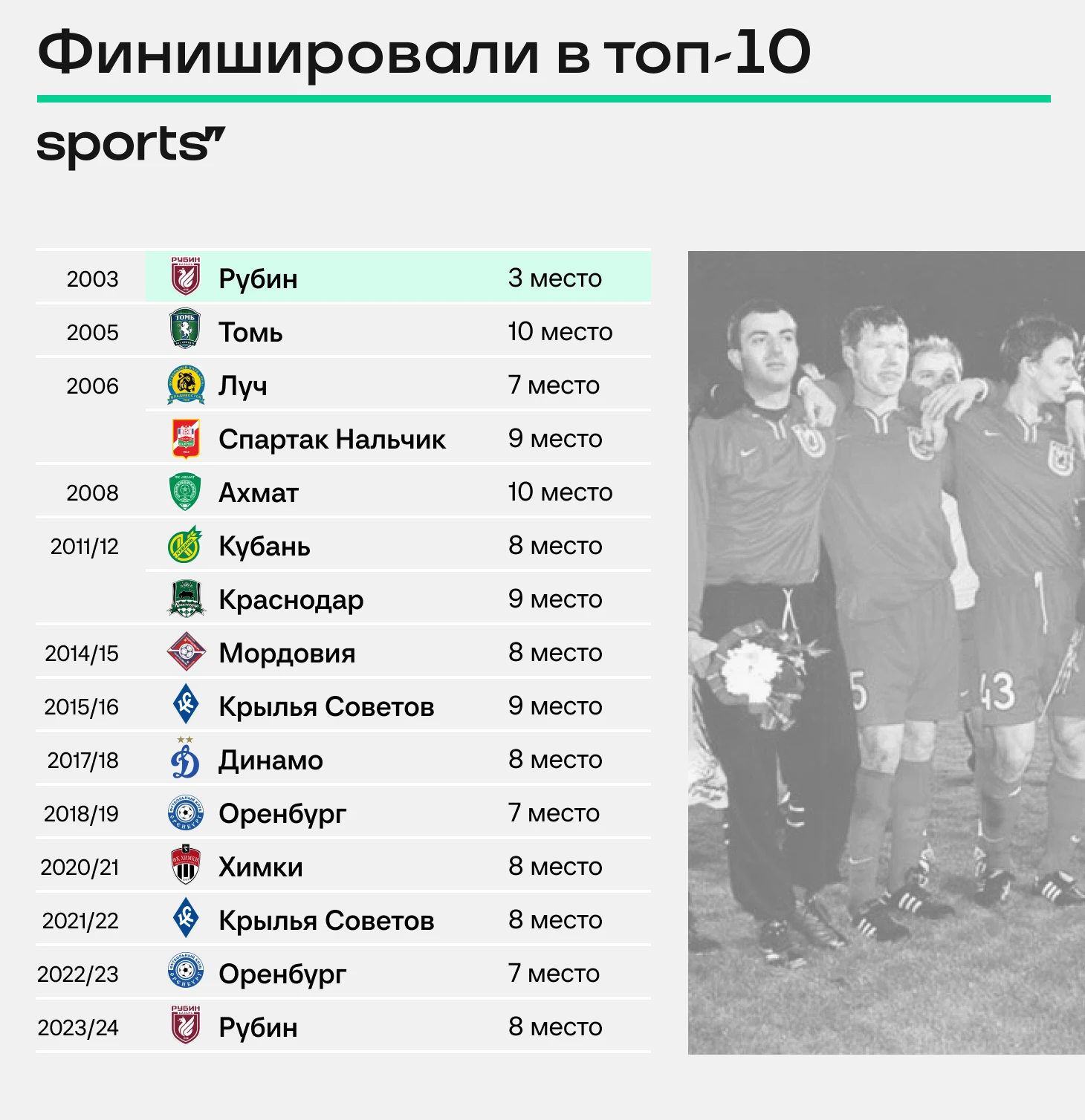 Сезон-2003. «Рубин» усиленно готовился к дебютному сезону в Премьер-лиге – укрепился большим количеством игроков, особенно легионерами. Итог поразил – парни Курбана Бердыева взяли бронзу! Все решилось в последнем туре против ЦСКА. «Рубин» вырвал победу в концовке (3:2) и погрузил всю республику в настоящую эйфорию. Так дерзко никто из дебютантов больше не выступал.