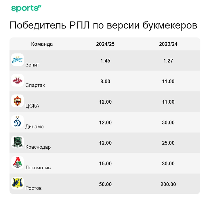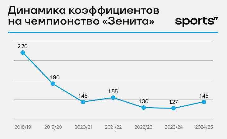 Коэффициенты на чемпионство «Зенита» в РПЛ-2024/25 не самые низкие в эпоху гегемонии, но, кажется, клуб не хочет повторять нервотрепку прошлого сезона и готов установить рекорд – седьмой титул подряд.