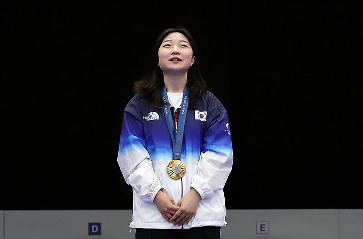 16-летняя кореянка шла по котировкам только 11-й, а в итоге так настреляла из винтовки, что установила олимпийский рекорд в квалификации, а затем сравнялась по очкам с третьей по прогнозам китаянкой Хуан Юйтин и превзошла ее в перестрелке.