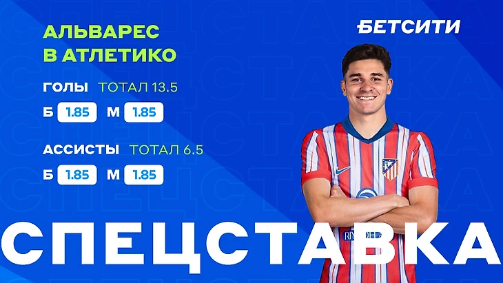 Сколько забьет? В прошлом сезоне АПЛ Альварес принял участие в 36-ти матчах «Ман Сити» и забил 11 мячей. В «Атлетико» аргентинец должен стать основным игроком в линии атаки Симеоне, получать больше игрового времени и шансов. Наши аналитики предлагают тотал в 13.5 голов. Поставить на «больше» или «меньше» можно с одинаковым коэффициентом 1.85.