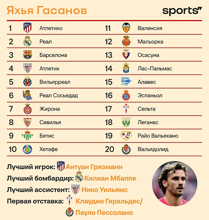 Зато попрощаемся с «Райо», «Лас-Пальмасом» и «Вальядолидом». Возможно, кого-то заменит «Осасуна», которой предстоит похмельный первый сезон без тренера Хагобы Аррасате. Он там как Клопп.