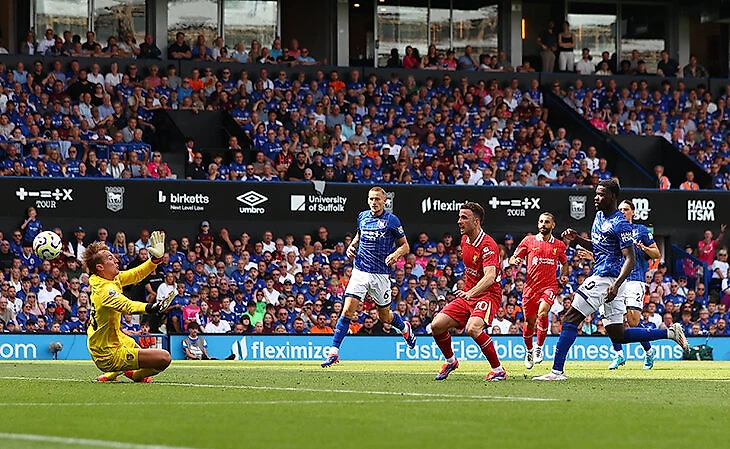 Первый матч Арне Слота в АПЛ во главе «Ливерпуль», гостевой соперник – дебютант «Ипсвич». Первый тайм – только три удара, в створ – ни одного. Во втором в течение пяти минут все исправил Мохамед Салах: ассистировал Диогу Жоте и забил сам – 2:0.