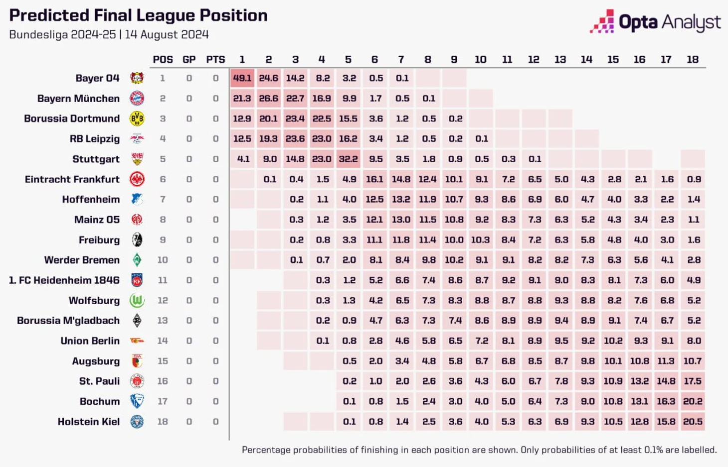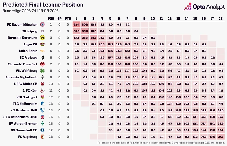 Перед стартом Бундеслиги фиксируем очень редкое событие – статистическая модель от Opta разошлась в оценке фаворита чемпионата с букмекерскими компаниями.