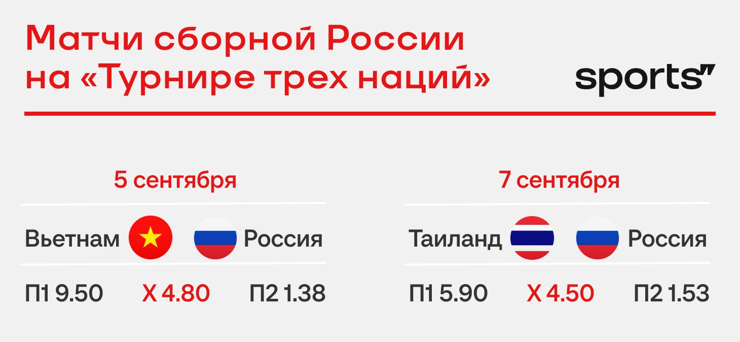 Букмекеры уверены, что Россия выиграет оба матча, хотя недооценивать азиатские сборные не стоит – команду Карпина ждет многочасовой перелет и акклиматизация. Но даже при таких условиях очевидно, что Вьетнам и Таиланд далеки от уровня российской команды.