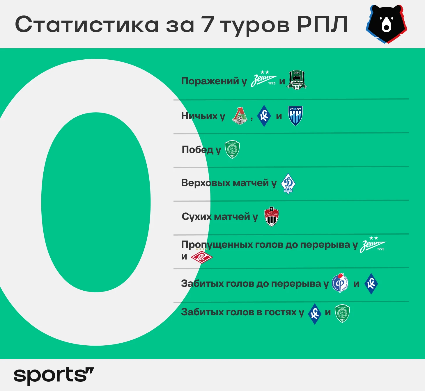 В основной таблице после семи туров сезона-2023/24 нулей было несколько – без поражений у «Краснодара», без ничьих у «Сочи» и «Балтики».