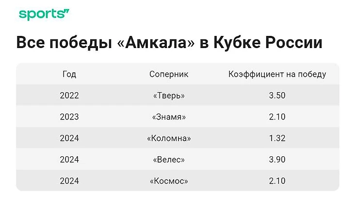 «Амкалу» было бы идеально попасть на «Шинник», «Тюмень», КАМАЗ или «Уфу». Этим клубам Кубок России вряд ли интересен в долгосрочной перспективе, учитывая жесткую борьбу за выживание в Первой лиге. Коэффициенты против таких соперников могут быть и близкими.