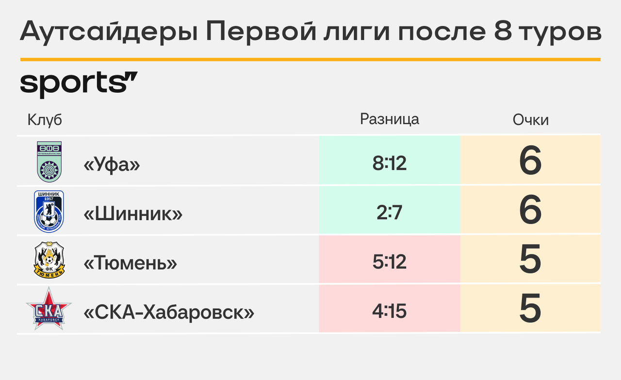 Здесь плотнее, чем наверху. Меньше всего очков набрали «Уфа», «Шинник», «Тюмень» и СКА-Хабаровск. Больших сюрпризов нет – из этой группы только на хабаровчан кэф перед сезоном был выше 100.00.
