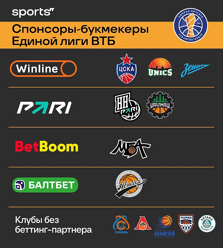 Беттинг-спонсоры в Единой лиге ВТБ: 5 клубов все еще без партнеров