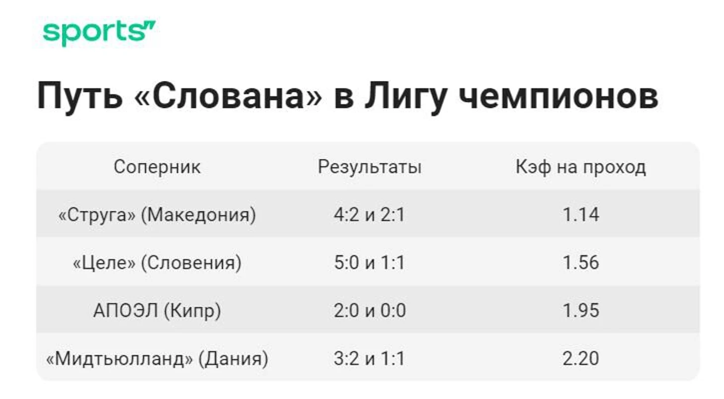 «Слован» уже выполнил задачу-максимум на Лигу чемпионов. Команда начинала свой путь с первого (!) квалификационного раунда. Для понимания: первая игра с македонской «Штругой» состоялась 10 июля, а сборная только 30 июня уступила Англии в 1/8 финала на Евро-2024. Сразу несколько футболистов фактически остались без отпуска. «Слован» в решающих матчах квалификации прошел датский «Мидтьюлланд», хотя и не был фаворитом (2.20 против 1.75 у датчан).