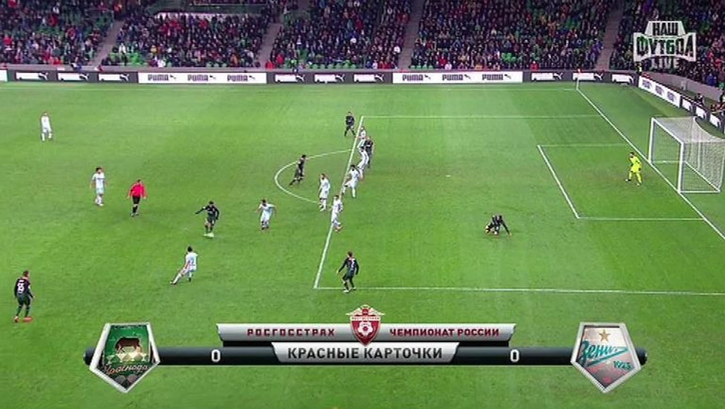 Равный первый тайм сменился примерно таким же вторым, где команды создали по паре опасных моментов, хотя хозяева по воротам били чаще. К 86-й минуте при счете 0:0 победа «Краснодара» шла за 9.00, после чего «Зенит» забил – Артем Дзюба в сутолоке у ворот после ошибки Андрея Синицына нанес точный удар.