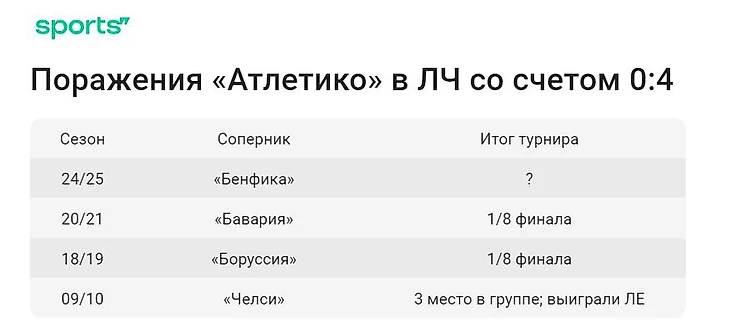Любопытно, что поражение без забитых мячей и с разницей в четыре мяча – не в новинку для «Атлетико» времен Диего Симеоне. Ранее такие осечки случались при нем два раза.
