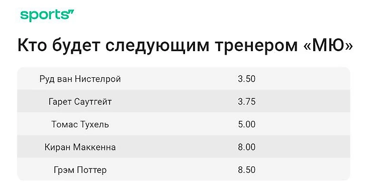 Несколько дней вокруг «Олд Траффорд» тревожно для Тен Хага блуждают слухи о Томасе Тухеле. Немца связывали с клубом еще летом. Сейчас на фоне большого количества новостей коэффициент на назначение Тухеля опустился до 5.00.