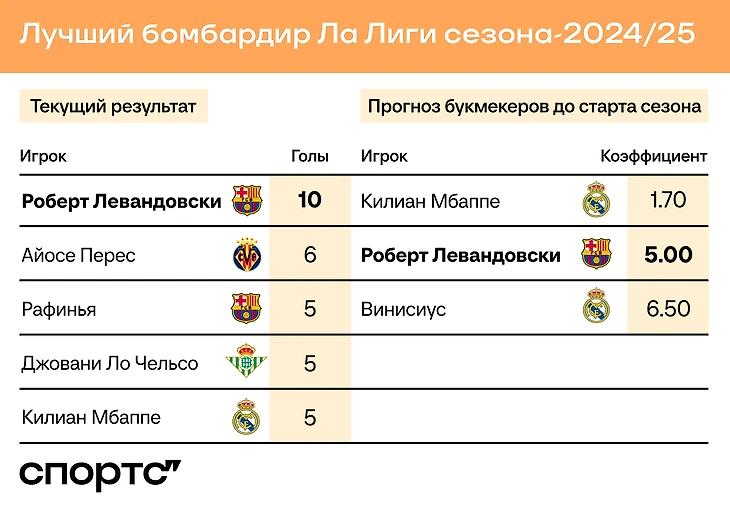 Ла Лига: Мбаппе считали фаворитом, а он уже на 5 голов отстал от Левандовского