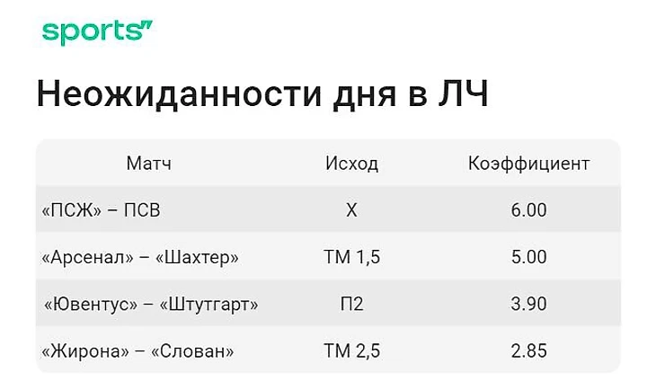«ПСЖ» столкнулся со сложностями и проиграл первый тайм. В итоге прошла ничья за 6.00. Забавно, что даже фора (+2) на ПСВ предлагалась в линии по котировкам в диапазоне 1.70-1.80.