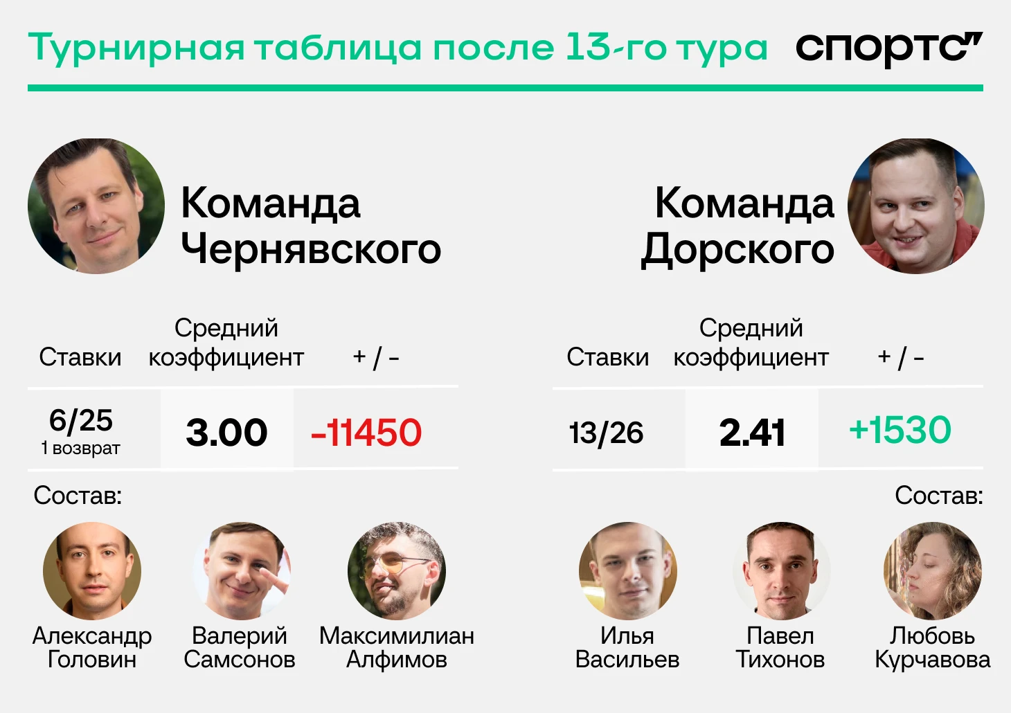 Это новый раунд всесезонного конкурса прогнозов от авторов Спортса’’ на РПЛ – в фокусе 14-й тур. Команду Глеба Чернявского представляет сам капитан, команду Александра Дорского – Илья Васильев.