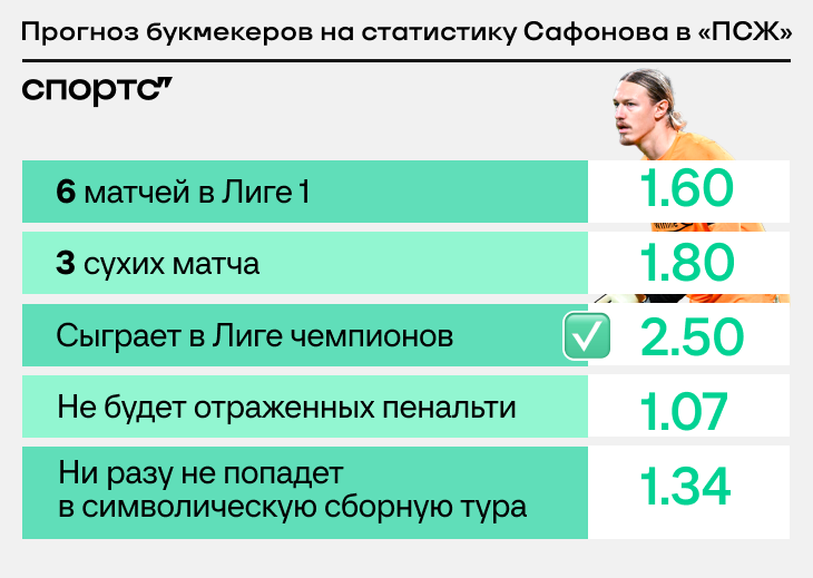 У Сафонова 4 матча и 2 сухаря за «ПСЖ». А что прогнозировали букмекеры?