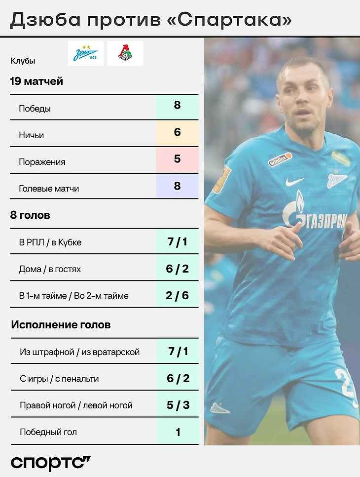 После ухода из «Зенита» у Дзюбы сохранялась успешная статистика – восемь побед и всего два поражения в 15 матчах против «Спартака» (оба случились весной и осенью 2017-го). Но после перехода в «Локомотив» статистика изменилась – Дзюба с «Локо» в четырех матчах не победил и трижды проиграл. Последняя победа – как раз те самые 7:1 в октябре 2021-го, где он реализовал пенальти.